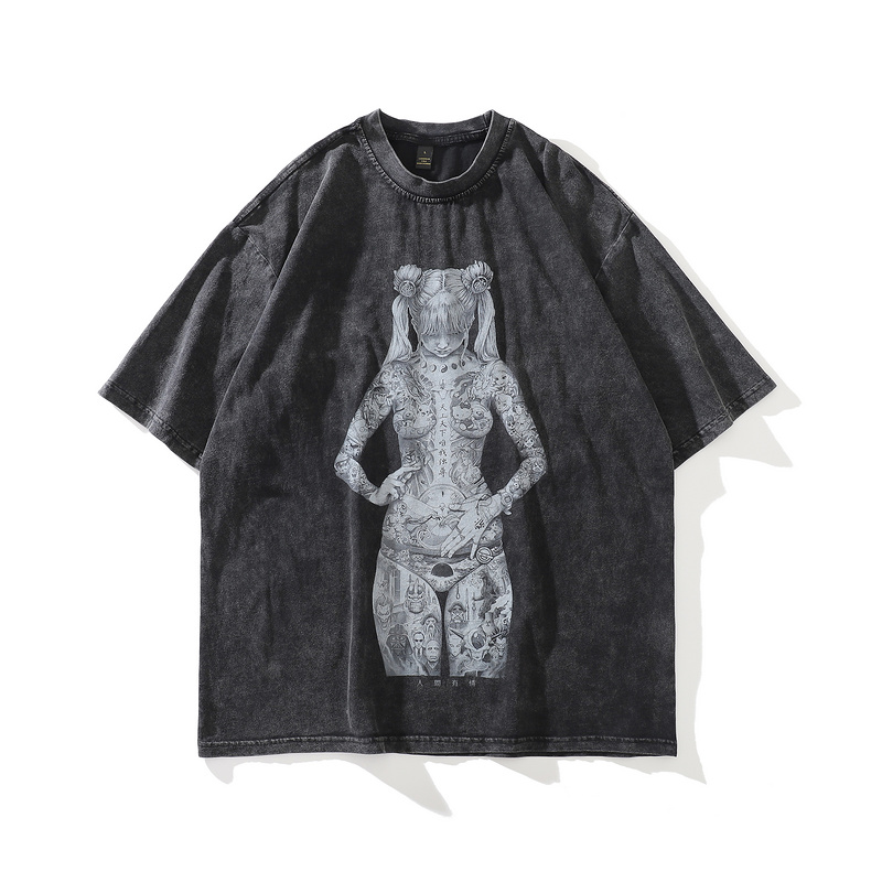 Футболка ТКРА с коротким рукавом, повседневная с чёрно-белым принтом.