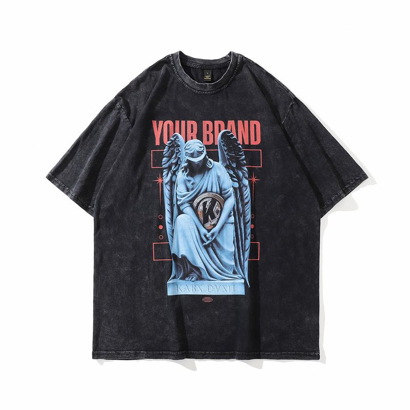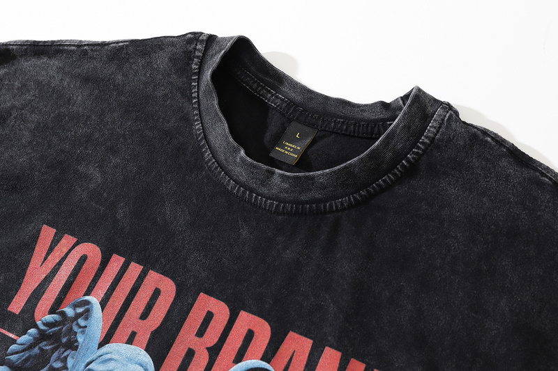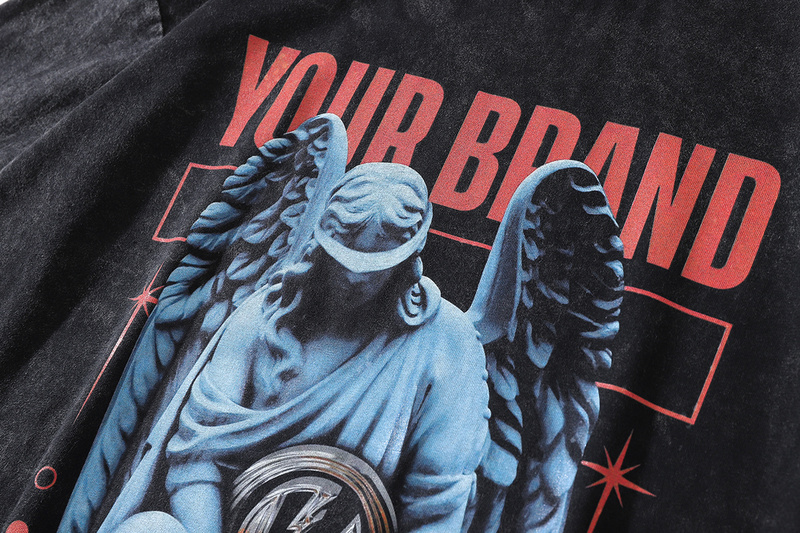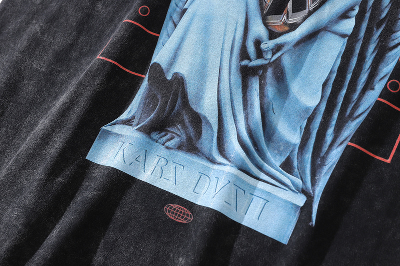 Футболка с голубо-красным принтом на груди - ТРКА свободного кроя.