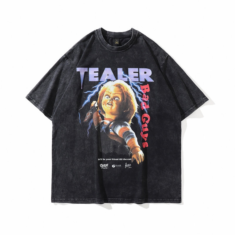Чёрная футболка с принтом "Чаки" TKPA в стиле оверсайз