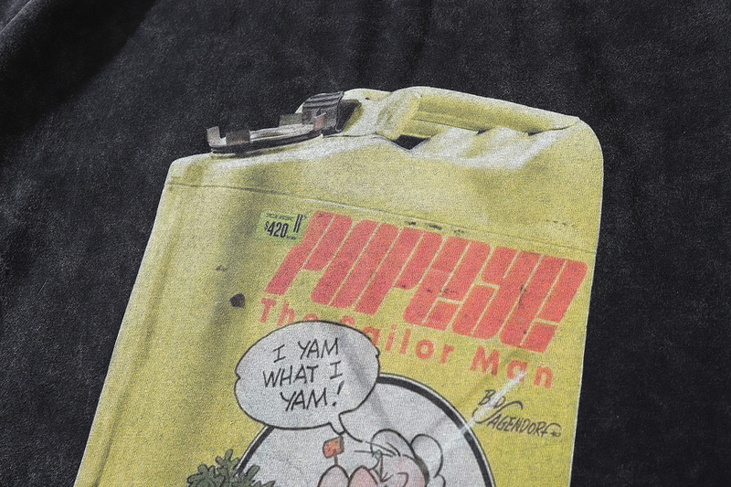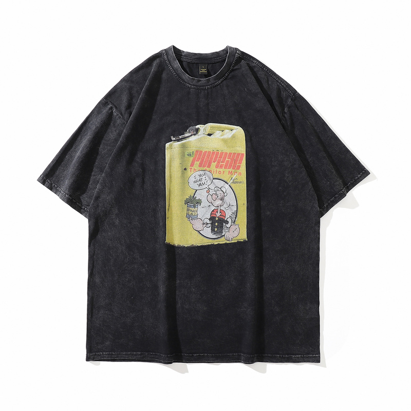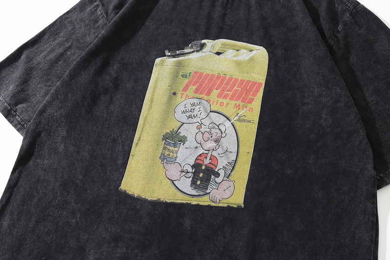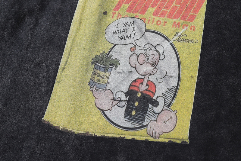 Чёрная футболка оверсайз от бренда TKPA с принтом "Моряк Попай".