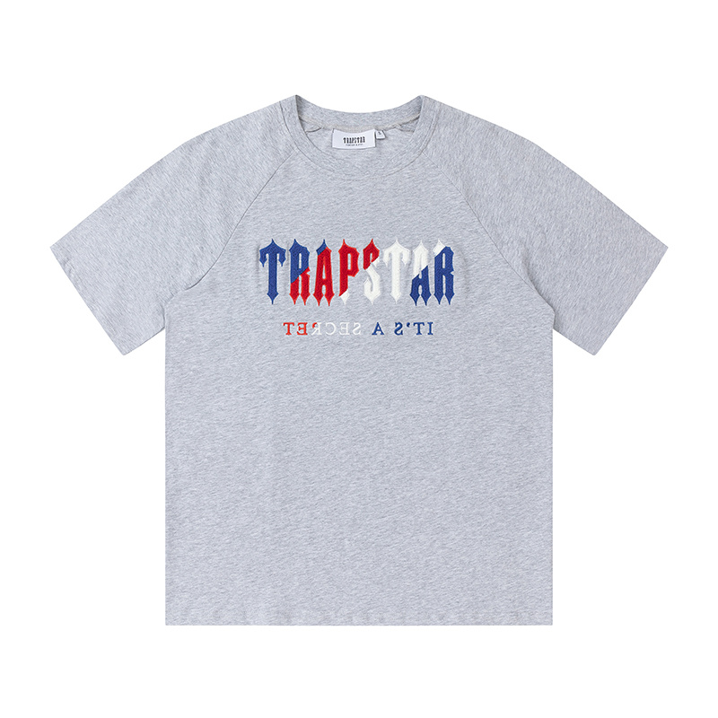 Серая футболка Trapstar с трёхцветным логотипом, прямой крой