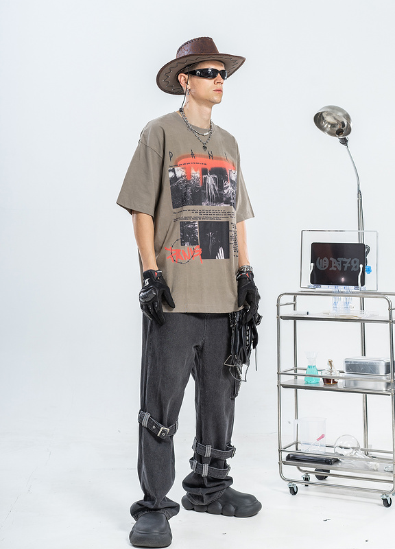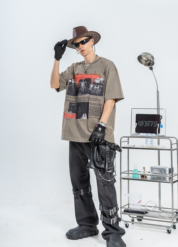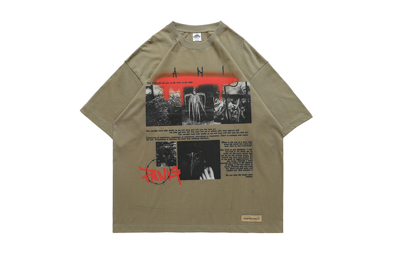 Футболка цвета хаки с большим фирменным принтом спереди