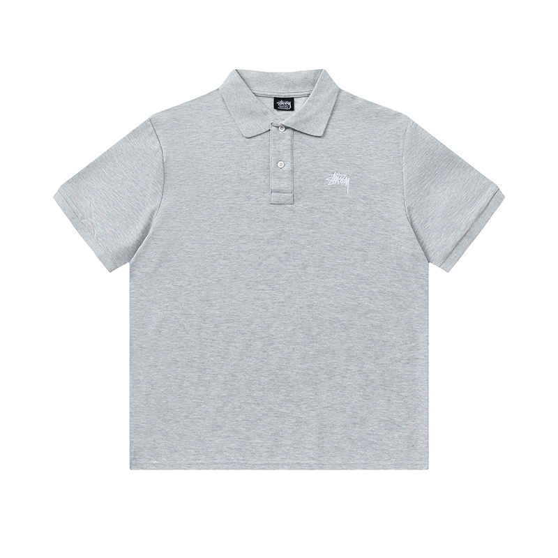 Футболка в сером цвете Stussy с коротким рукавом на пуговицах