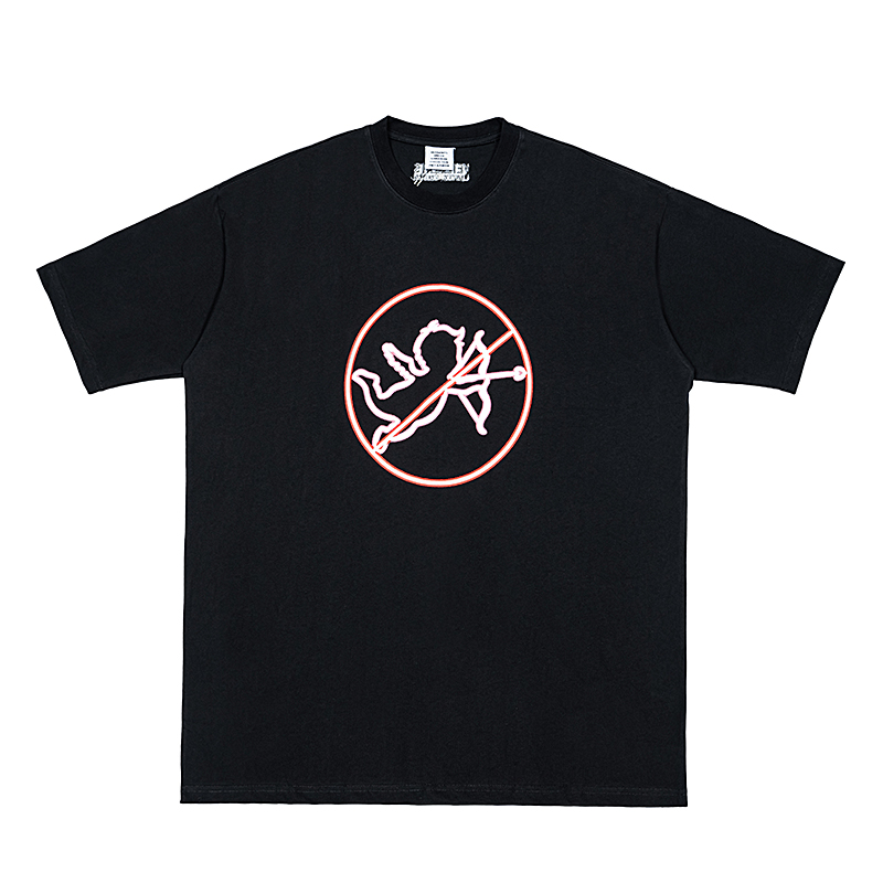 Оверсайз черная футболка VETEMENTS WEAR с запрещающим знаком с ангелом
