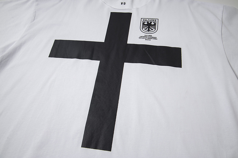 Футболка VULTURES в белом цвете с крестом на груди выполнена из плотного хлопка. Основа гладкая, без лишней текстуры. Принт расположен по центру, с чёткими очертаниями. Контраст между белым фоном и тёмным изображением создаёт акцент. Крой прямой, с комфортной посадкой. Горловина круглая, с мягкой эластичной обработкой.