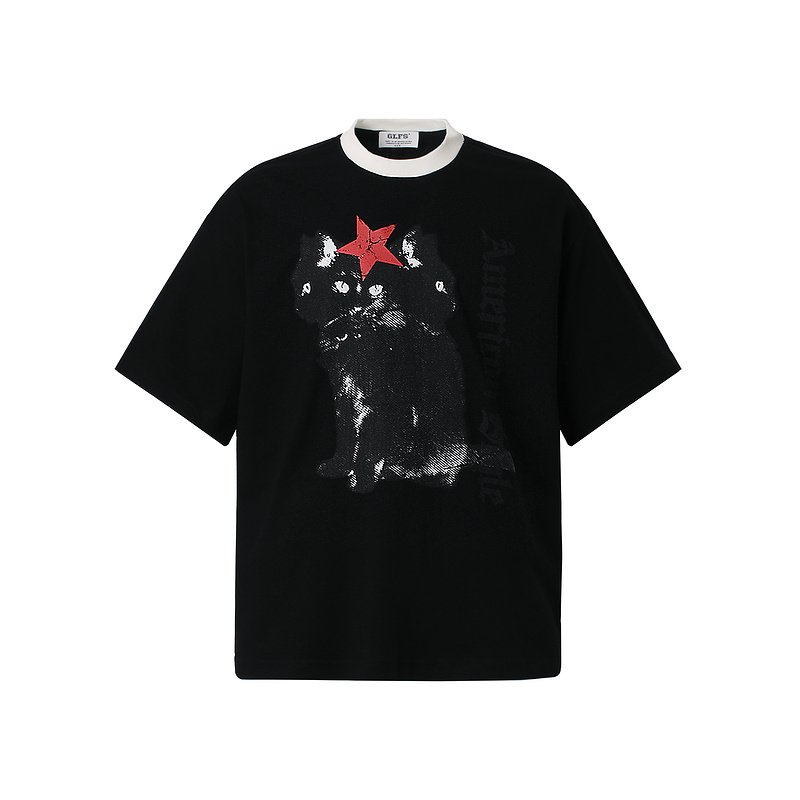 GLFS футболка в черном цвете с белой полоской на воротнике