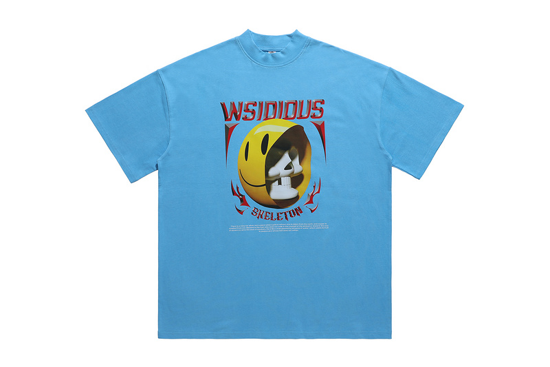 Голубая футболка с принтом в виде смайла с черепом "WSIDIOUS skeleton"