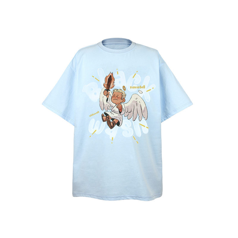Голубая с принтом футболка VANCARHELL свободного кроя