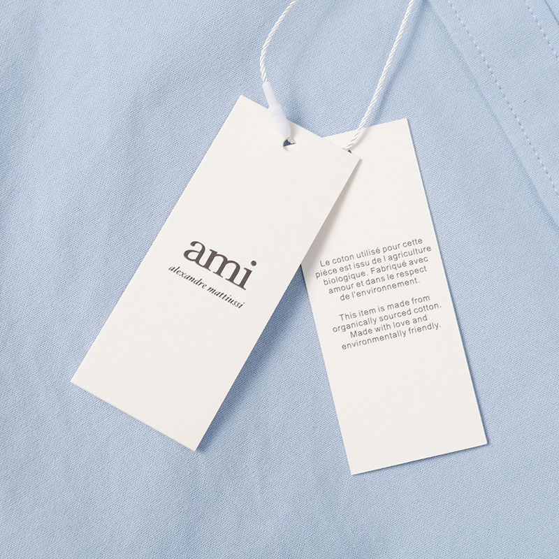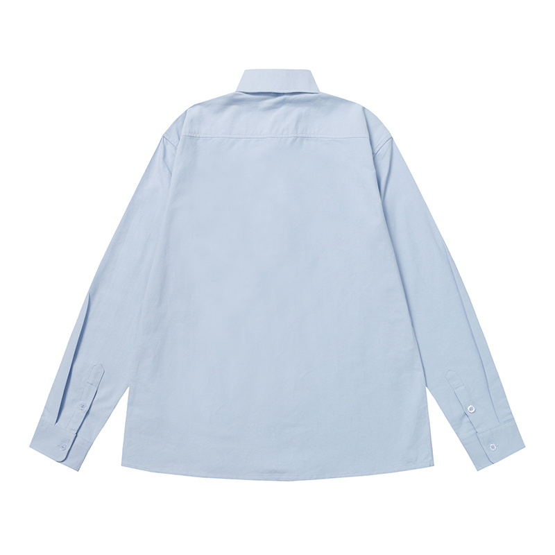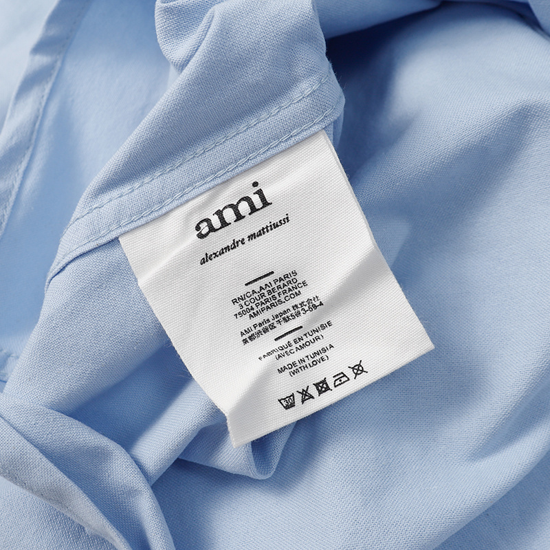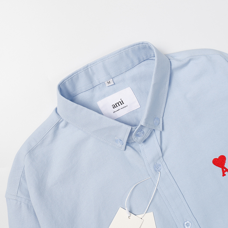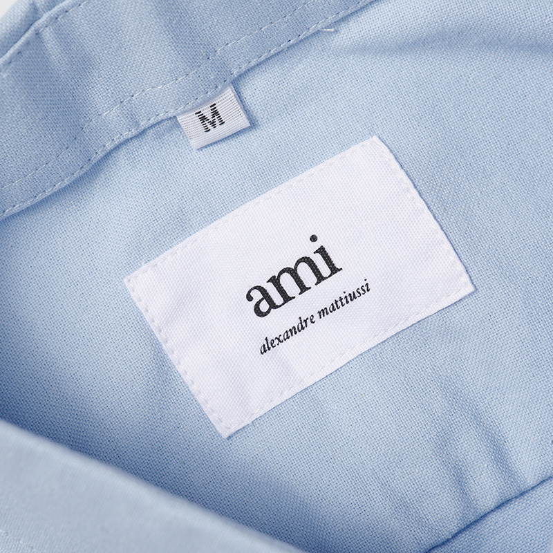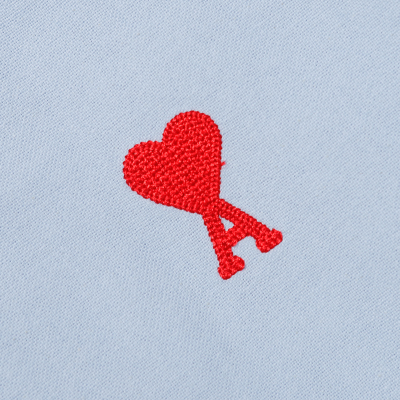Голубая с принтом вышитым AMI рубашка с манжетами на пуговицах