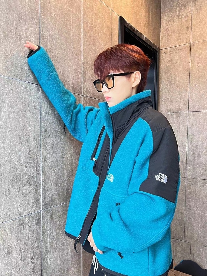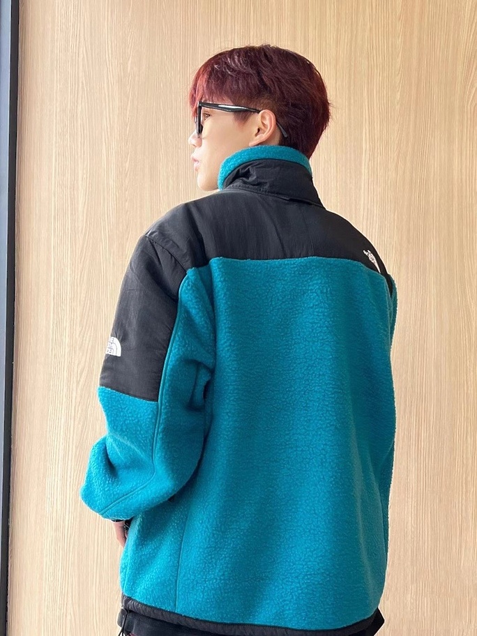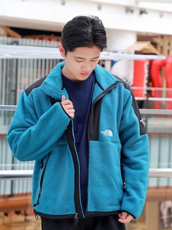 Голубая шерпа с лого The North Face куртка на молнии с карманами