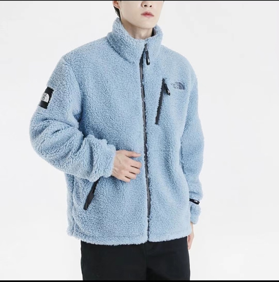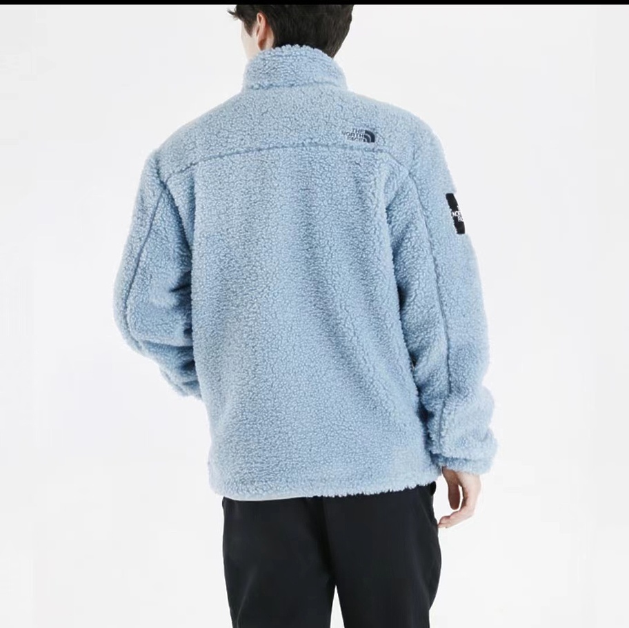 Голубая унисекс куртка The North Face пушистая с карманами на молнии
