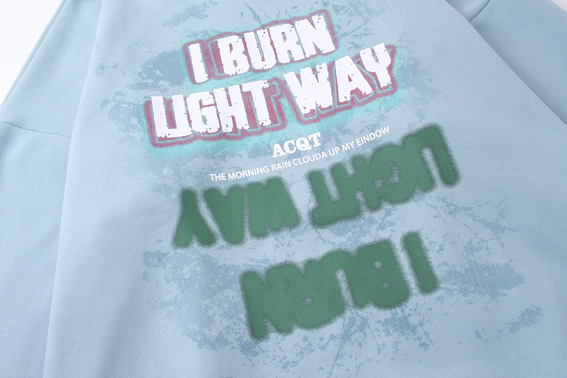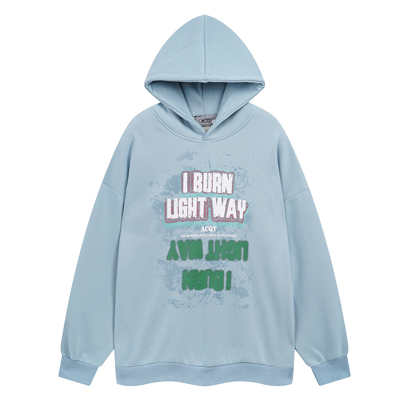 Голубое ACQT худи с фирменным текстовым рисунком спереди