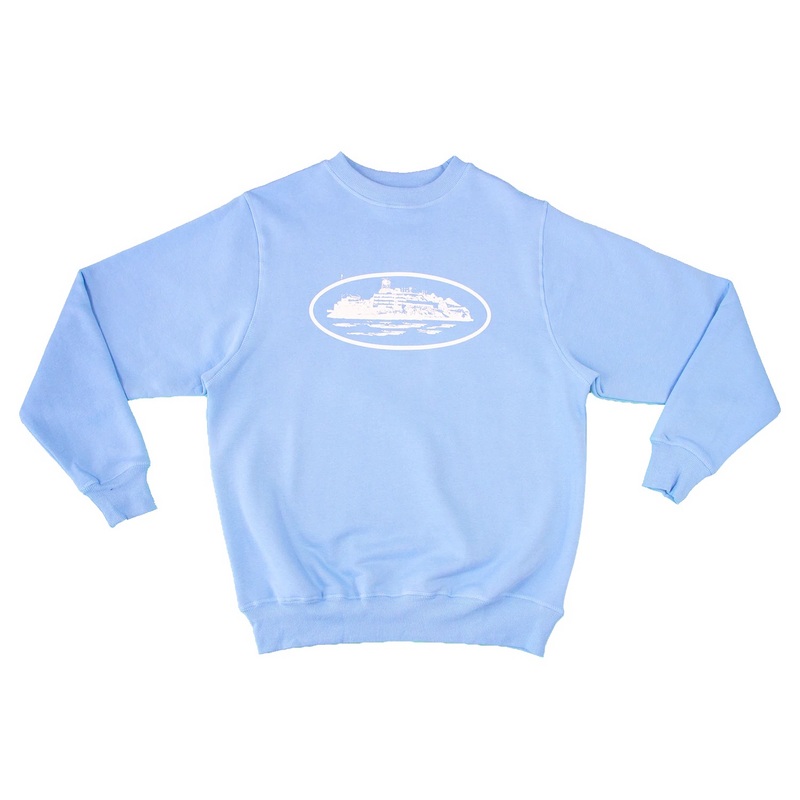 Голубой Corteiz повседневный свитшот с трикотажными манжетами