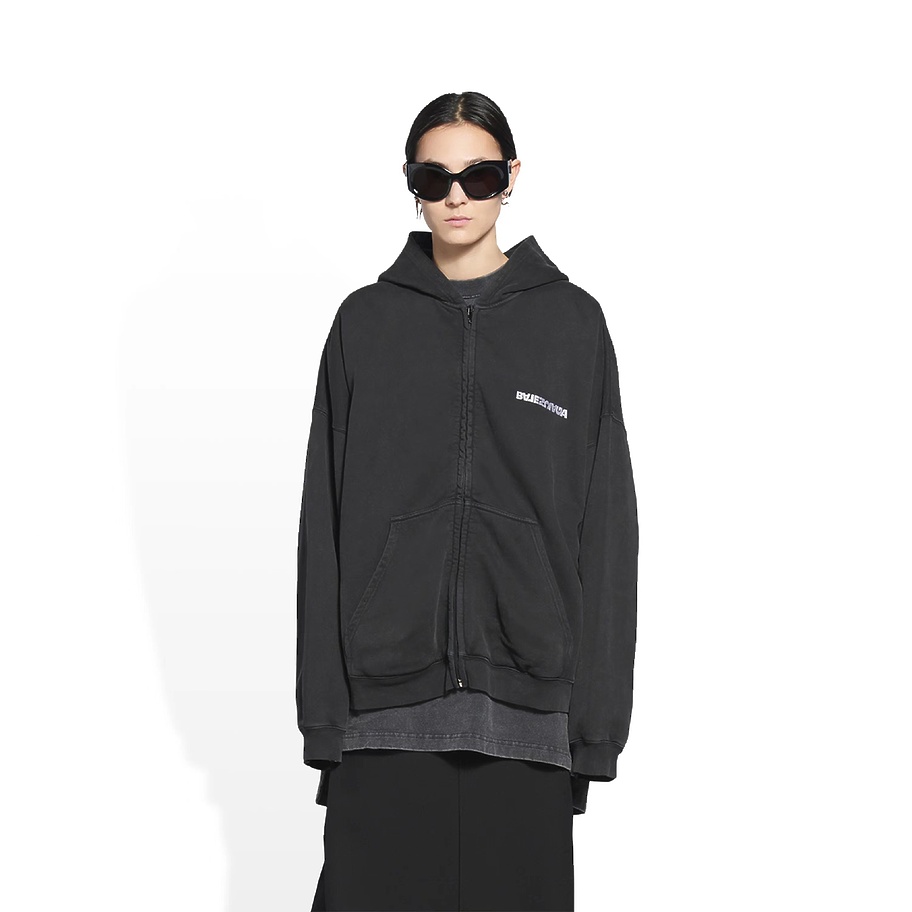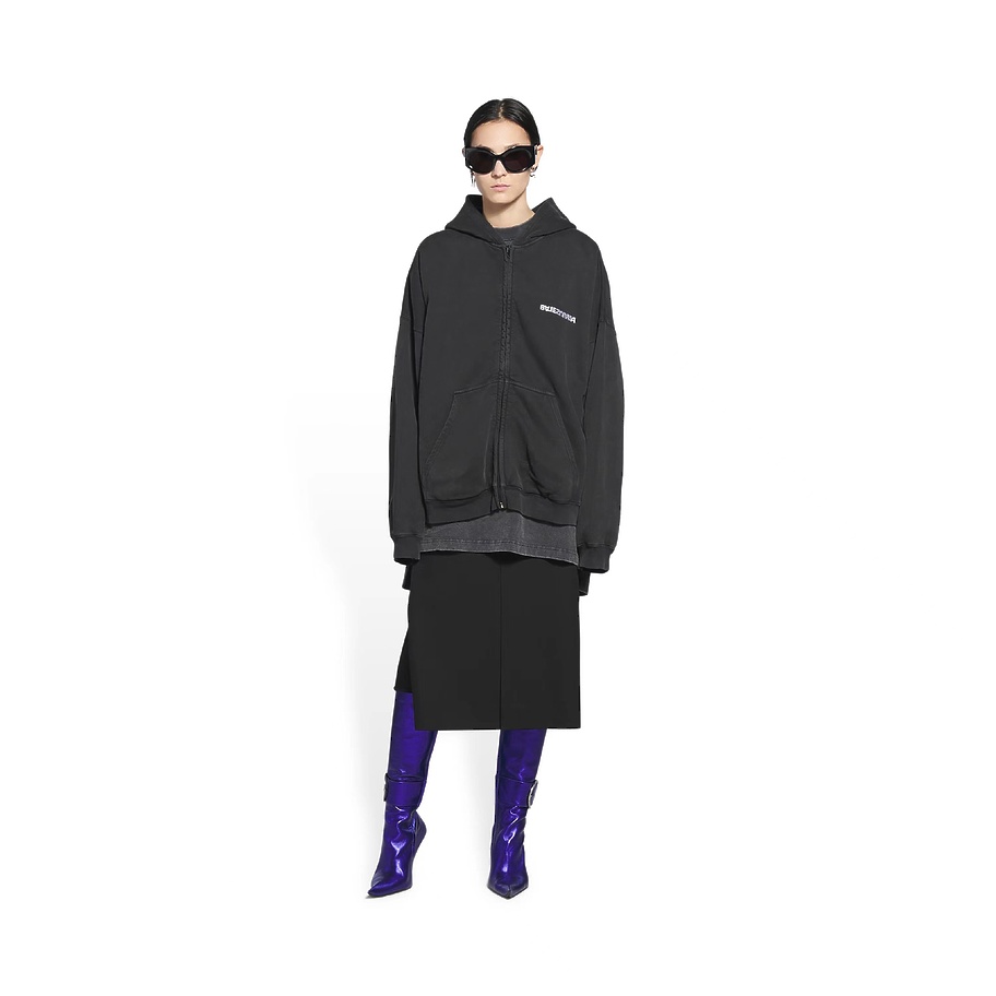 Графитового цвета худи на молнии Balenciaga с опущенной линией плеча