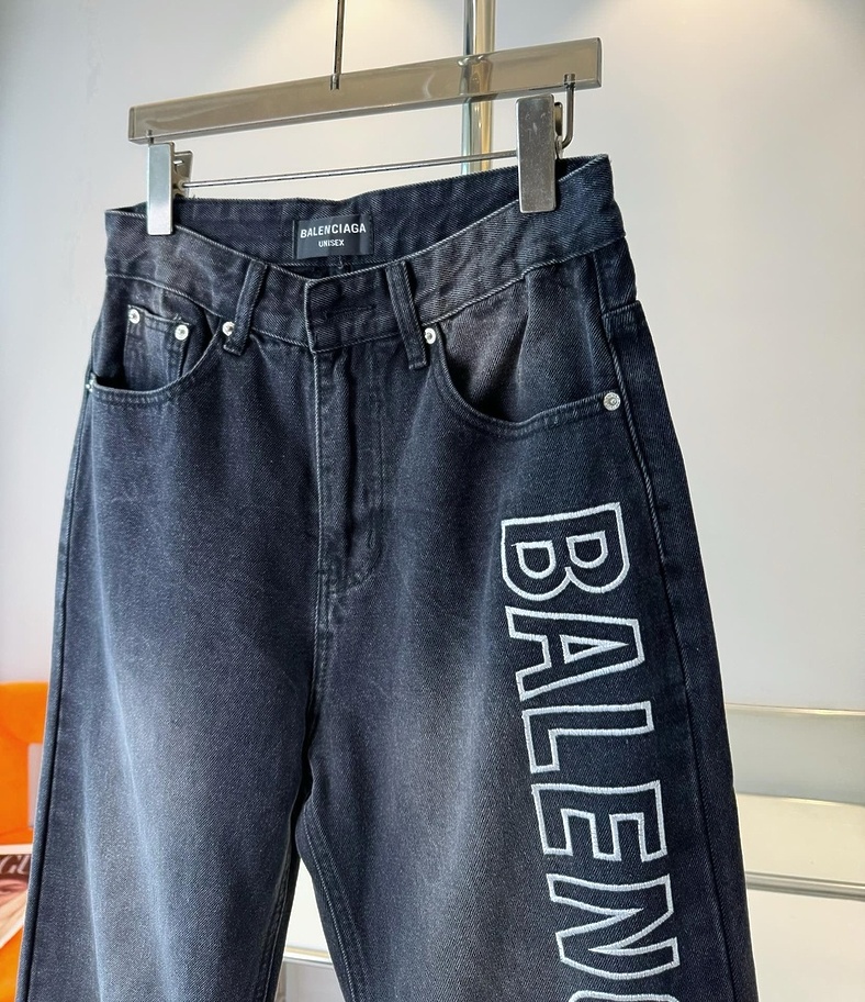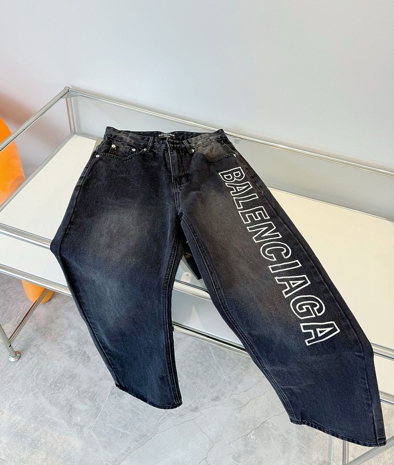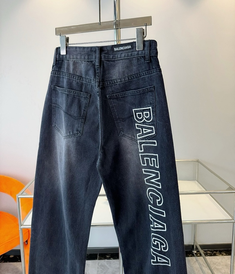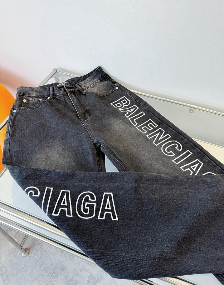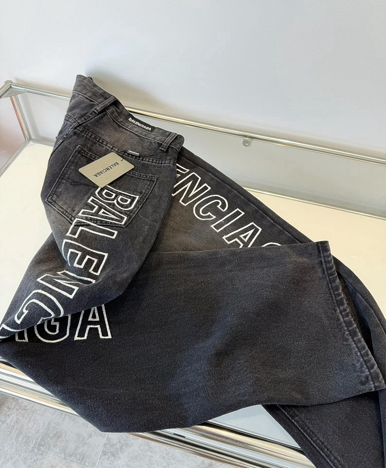 Графитовые выстиранные с логотипом Balenciaga джинсы