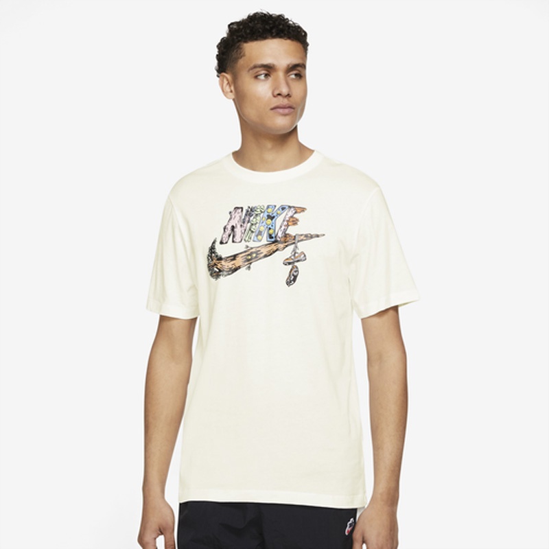 Хлопковая белая с коротким рукавом и спущенным плечом футболка Nike