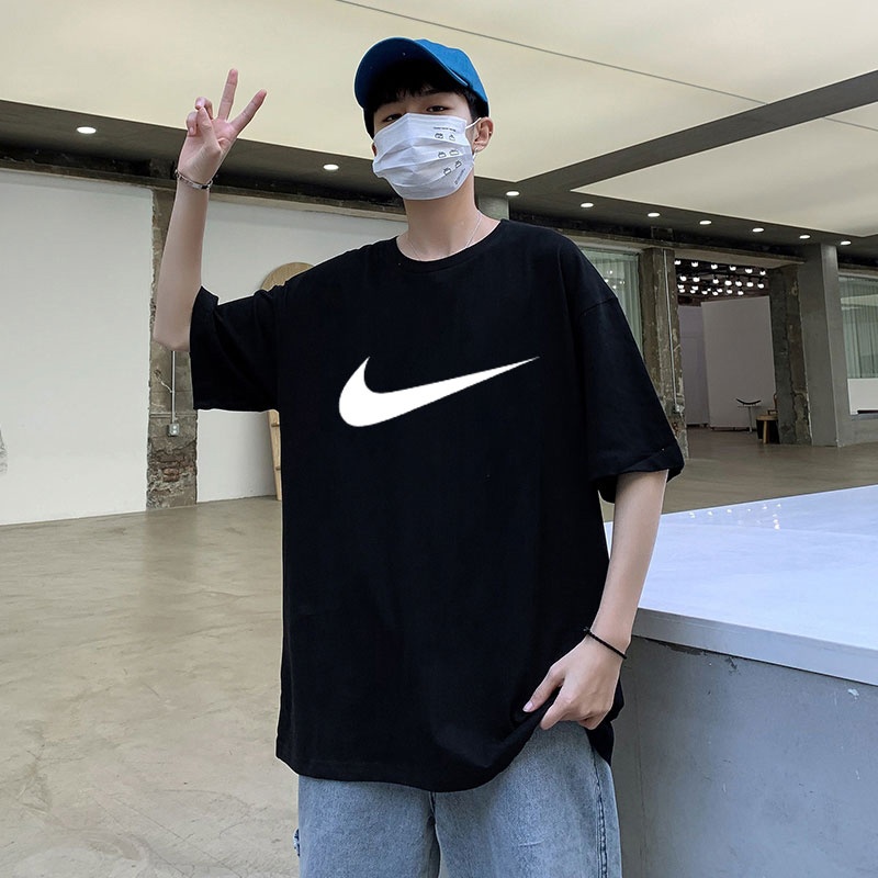 Хлопковая чёрная футболка Nike со спущенной линией плеча