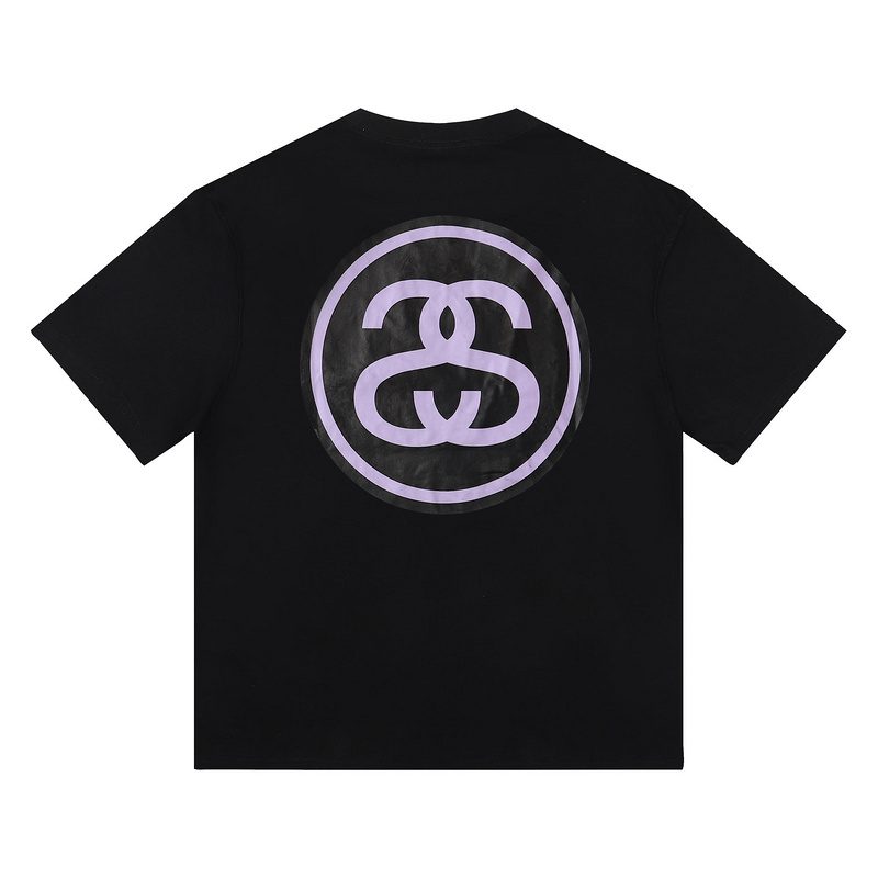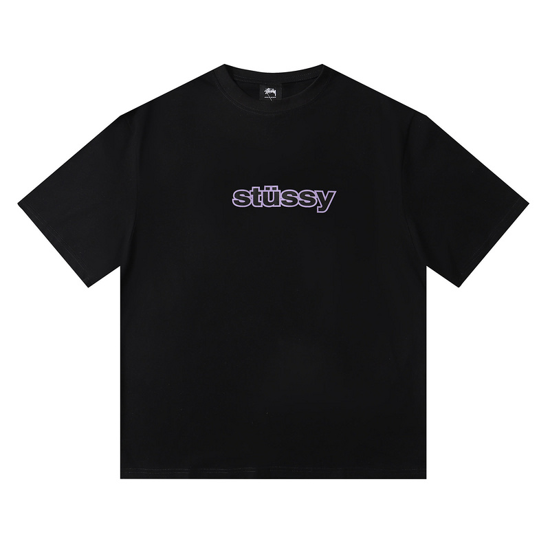 Хлопковая чёрная футболка Stussy с круглым вырезом и коротким рукавом
