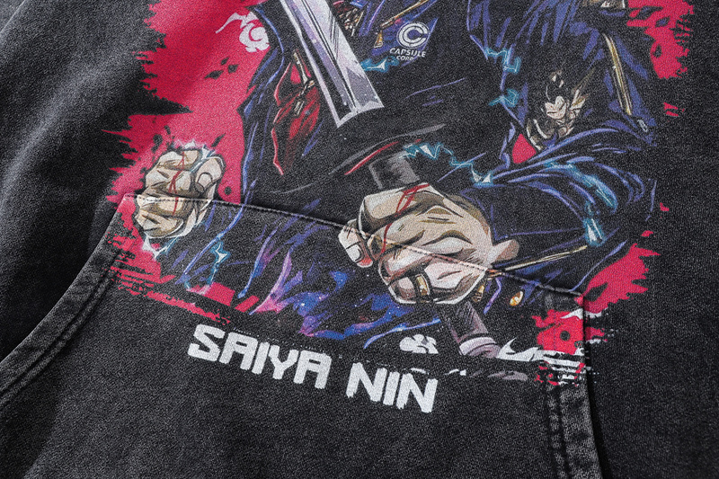 Хлопковая чёрная оверсайз худи от бренда TKPA с качественным принтом