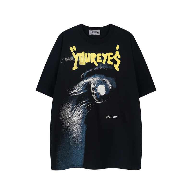 Хлопковая в черном цвете футболка с принтом глаза ACQT