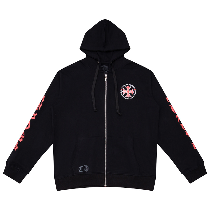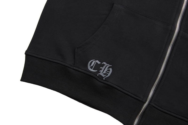 Хлопковое оверсайз Chrome Hearts чёрное зип худи с нашитым карманом