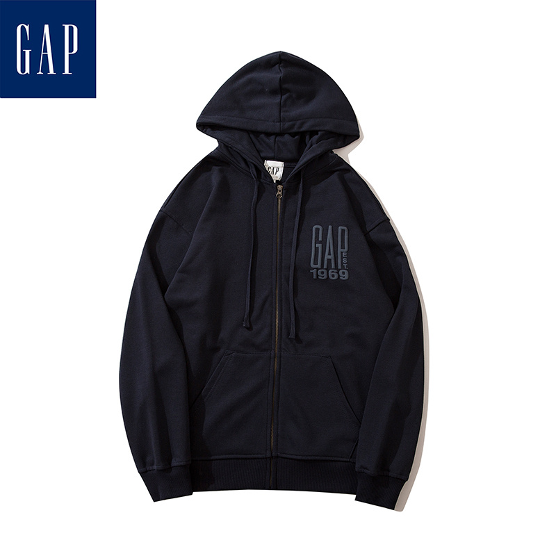 Хлопковое оверсайз тёмно-синее зип худи GAP с накладными карманами