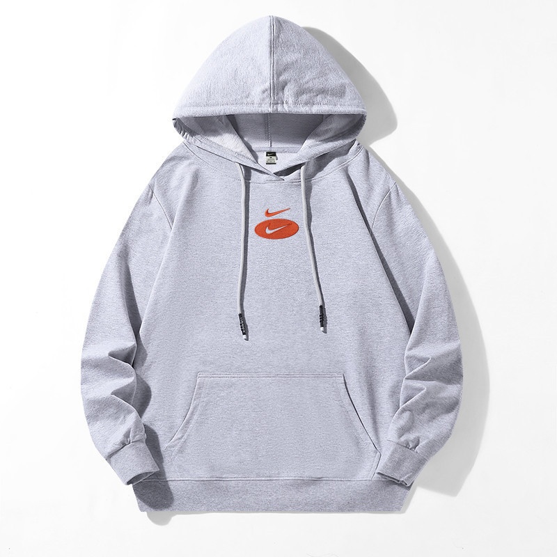 Хлопковое серого-цвета и принтом от Nike худи с объёмным капюшоном