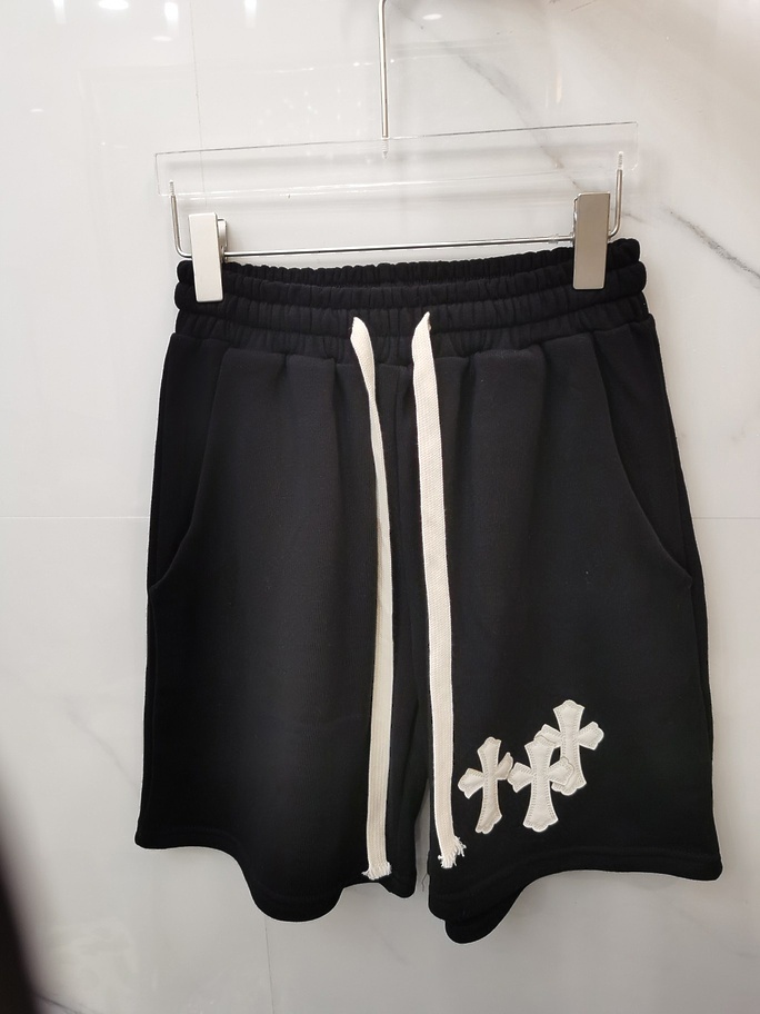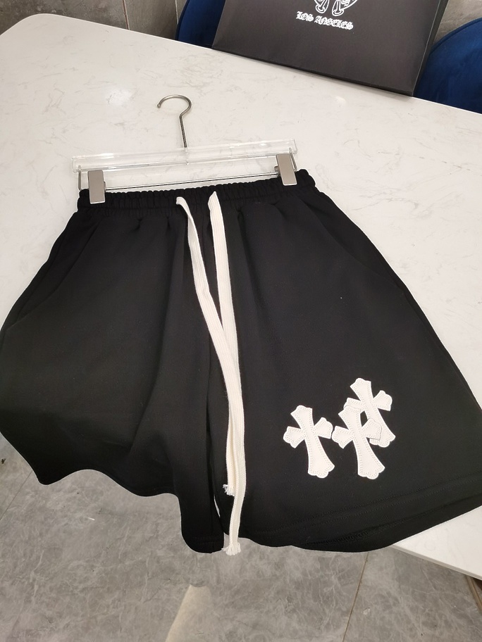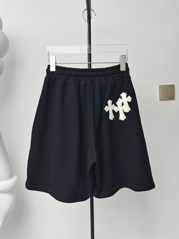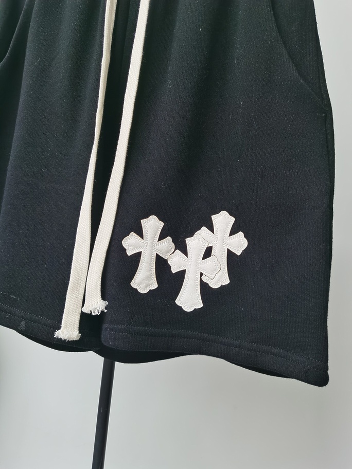 Хлопковые черные шорты от бренда CHROME HEARTS с нашитым принтом