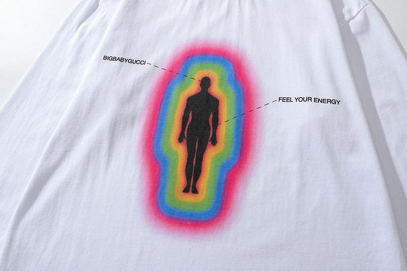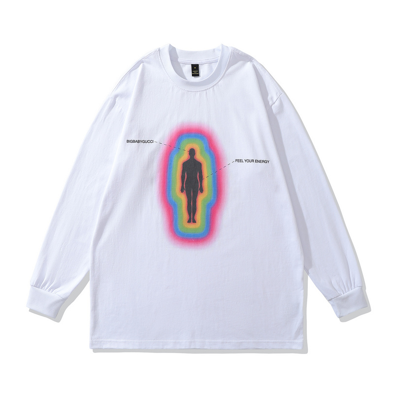 Хлопковый белый TKPA лонгслив с разноцветным принтом по центру груди