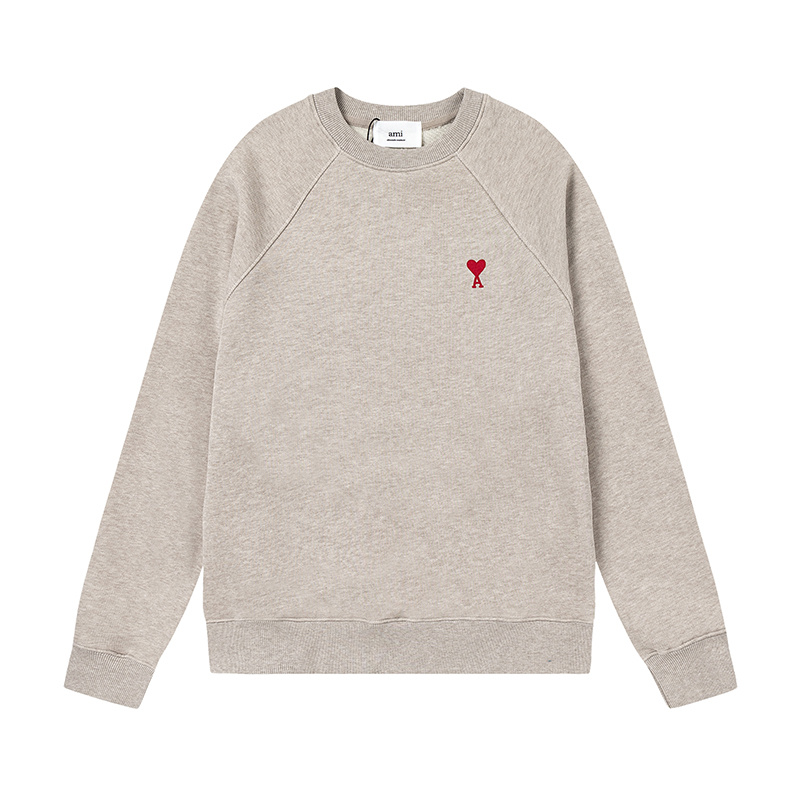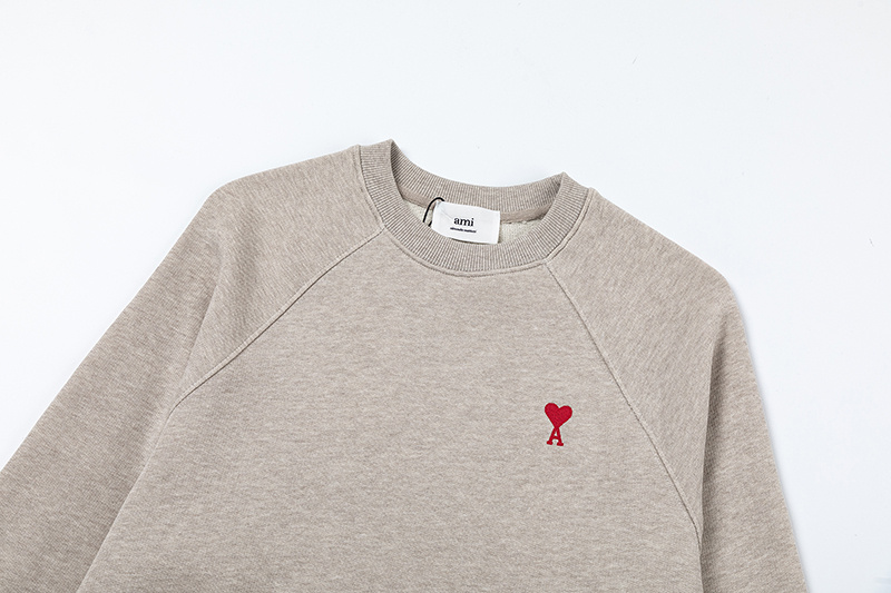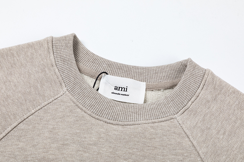 Хлопковый трикотажный свитшот AMI в бежевом-цвете с круглым вырезом