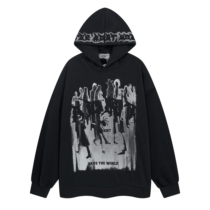 Худи ACQT с принтом "Затеряться в толпе" черное классическое