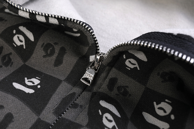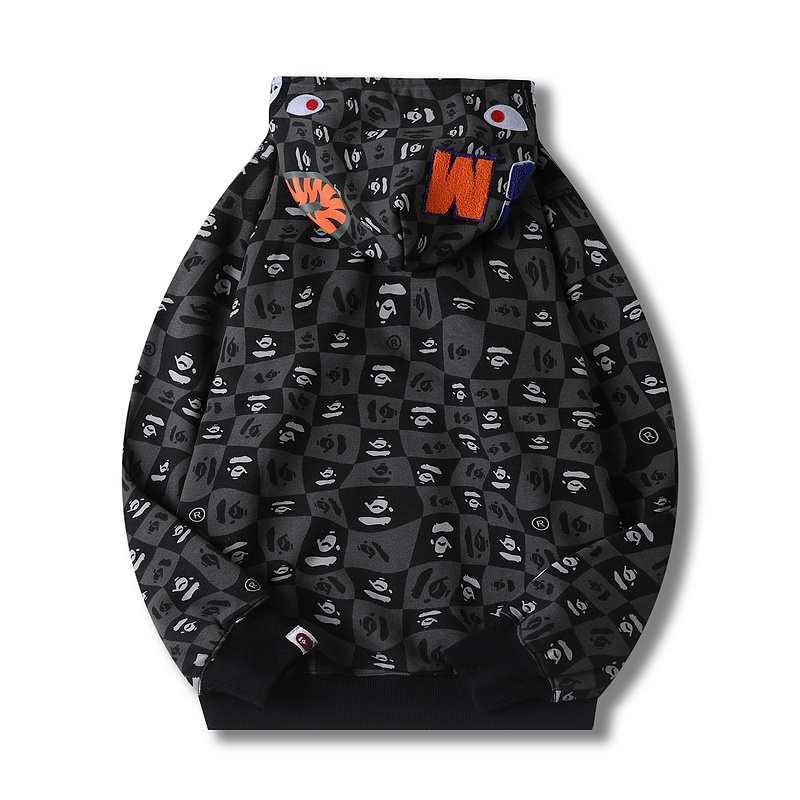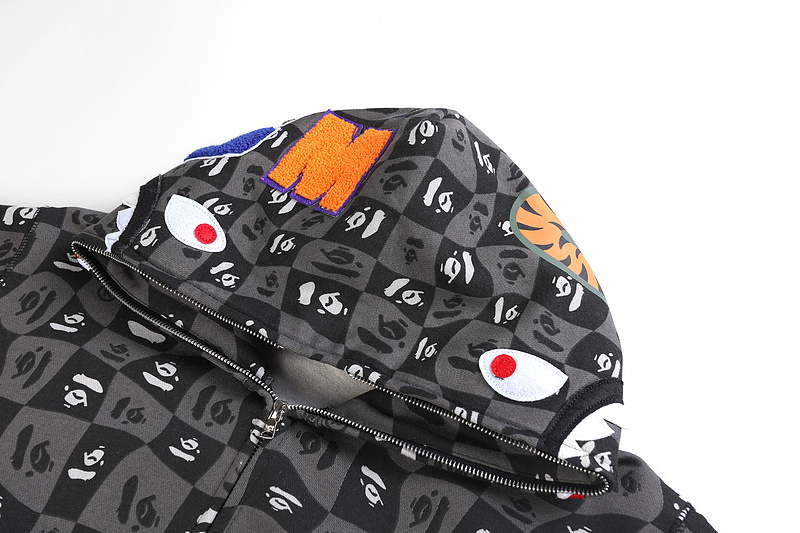 Худи Bape Shark WGM на замке с нашивками на капюшоне чёрно-серый
