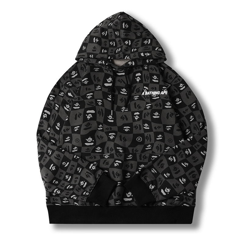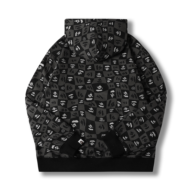 Худи Bape Shark WGM серо-черного цвета с надписью на груди