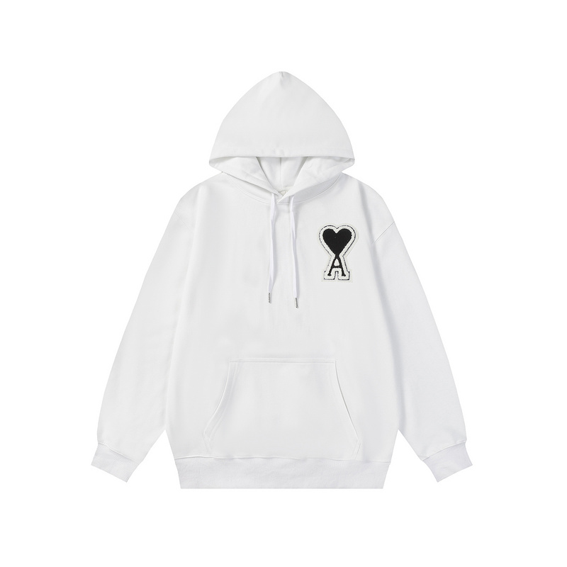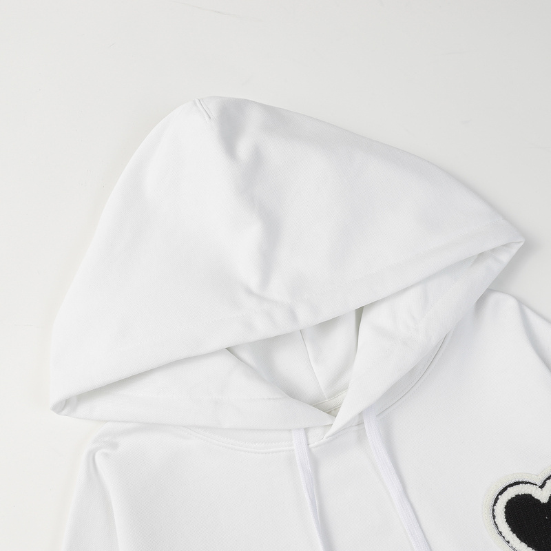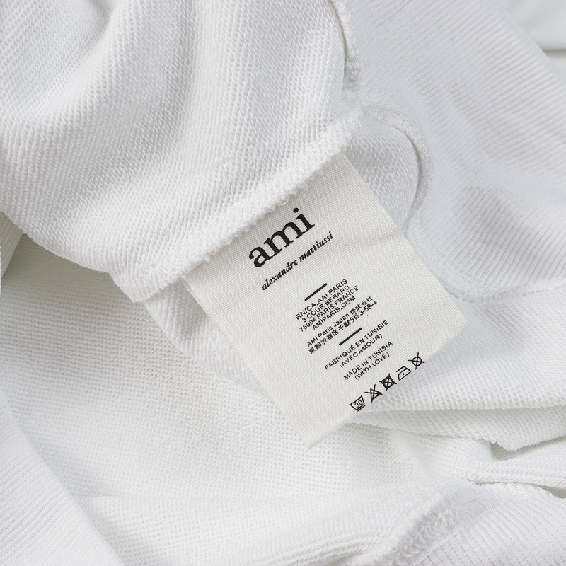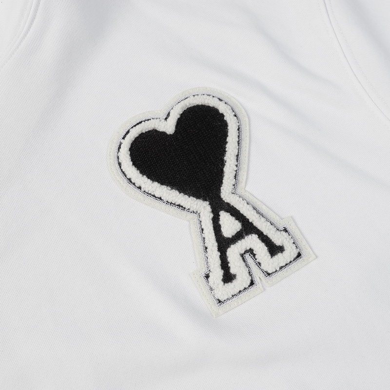 Худи бело с чёрной вышивкой AMI и эластичными манжетами на рукавах