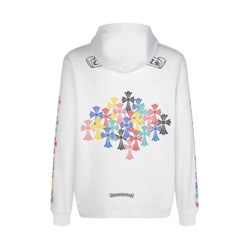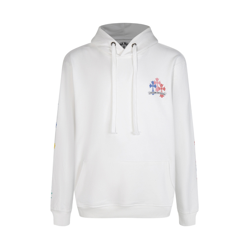 Худи белое с карманом кенгуру и рисунком CHROME HEARTS