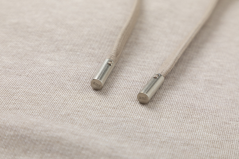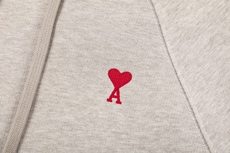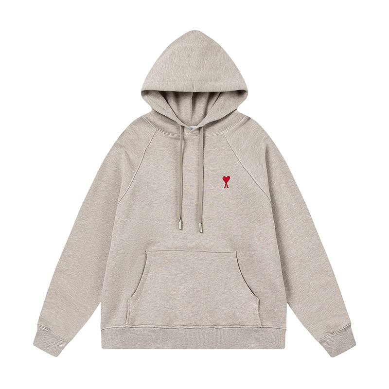 Худи бежевое с капюшоном и вышивкой "Love" на груди от бренда AMI