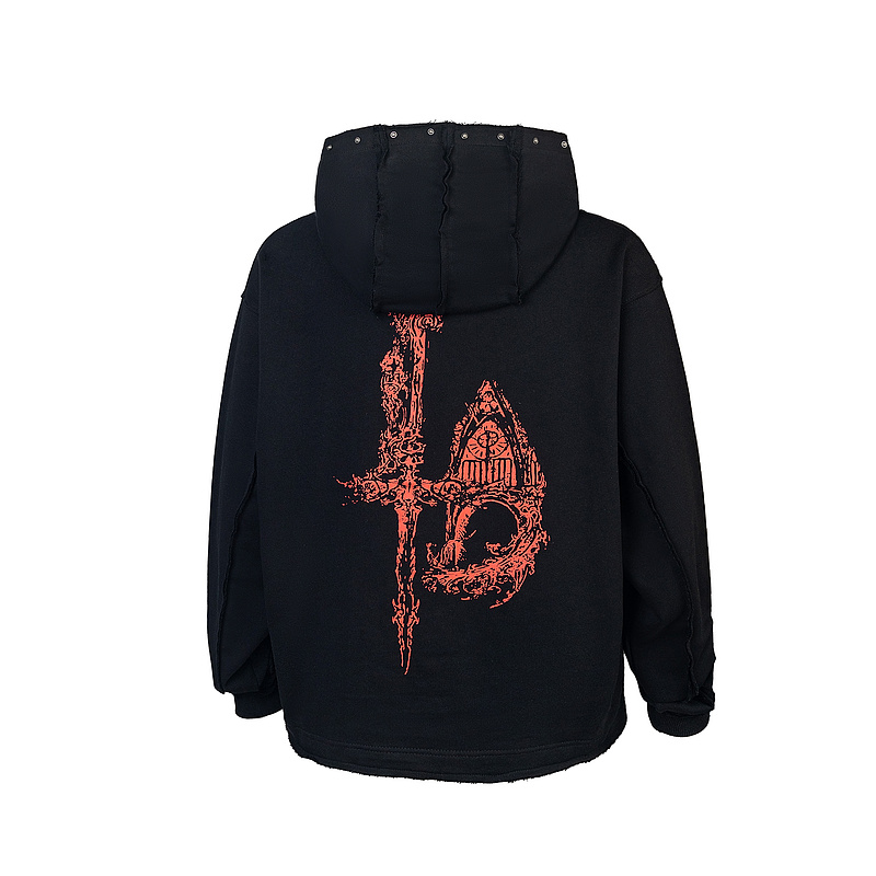Худи чёрное Thug Club с красным принтом спереди и сзади