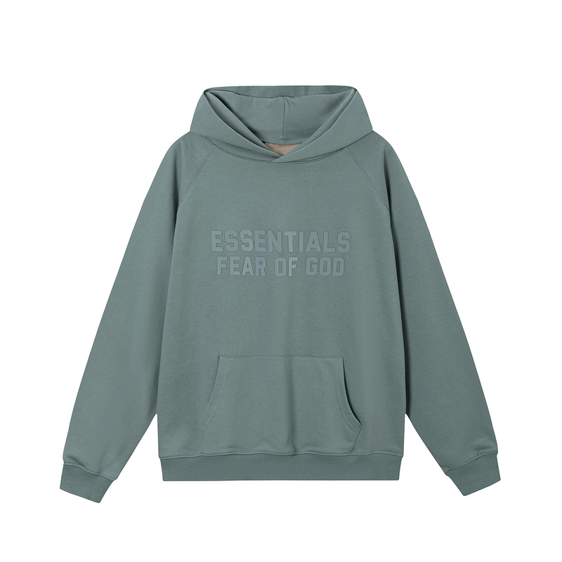 Худи голубое Fear Of God выполнено в стиле оверсайз