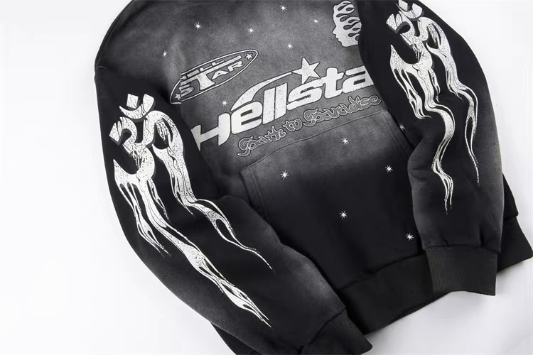 Худи Hellstar с рисунком на спине и рукавах в чёрном цвете