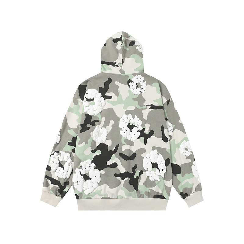 Светло-серый камуфляж выделяет худи среди базовых моделей. Принт сочетает элементы военной эстетики и уличного стиля, создавая узнаваемый образ. Материал — плотный хлопок с добавлением полиэстера, что повышает износостойкость. Модель имеет свободный крой, капюшон с регулировкой, накладные карманы. Швы прострочены двойной строчкой, молния металлическая. Denim tears худи подчеркивает индивидуальность, сохраняя комфорт.