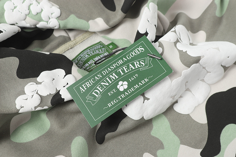 Камуфляжный принт нанесен методом цифровой печати, не трескается после стирки. Внутренняя часть выполнена из мягкого футера, который греет в холод. Манжеты и низ изделия дополнены резинкой, чтобы сохранять форму. Опт доступен для партий. Бренд denim tears известен вниманием к деталям, что видно в проработке кроя и выборе фурнитуры. Цена на худи камуфляжное Denim Tears в светло-сером цвете с принтом, соответствует качеству и актуальности модели.
