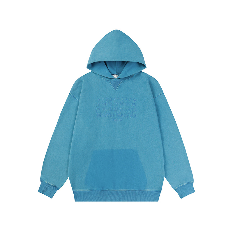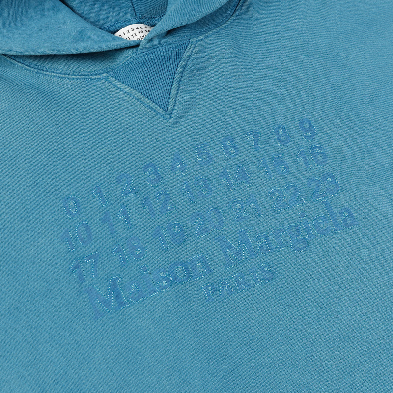 Худи Maison Margiela в синем цвете с брендовой надписью на груди