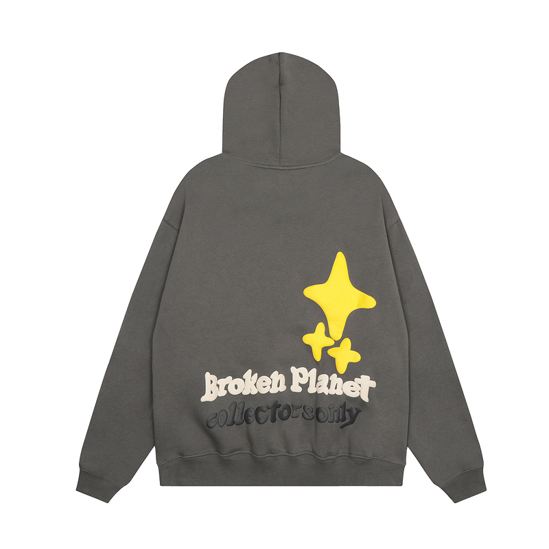 Худи от бренда Broken Planet в сером цвете с карманом кенгуру