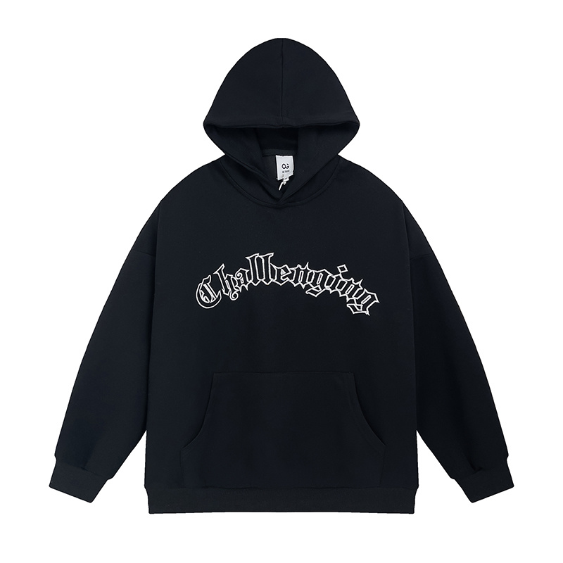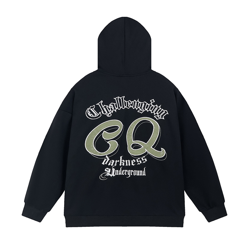 Худи с белой вышивкой ACQT черное для повседневной носки