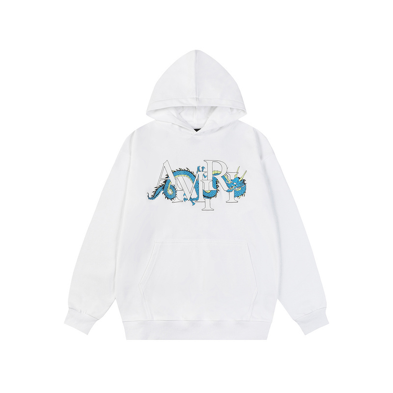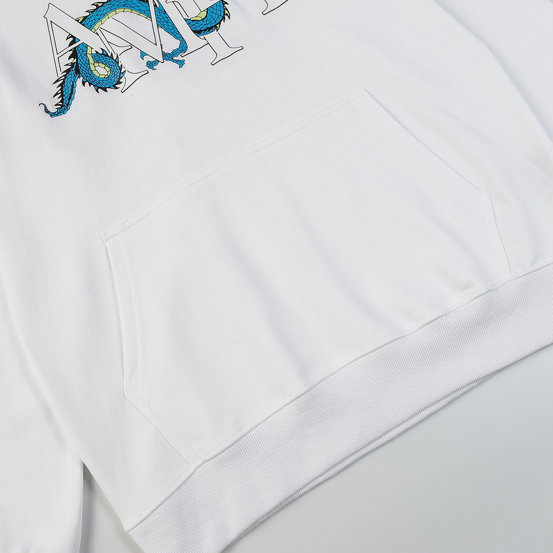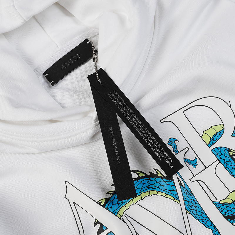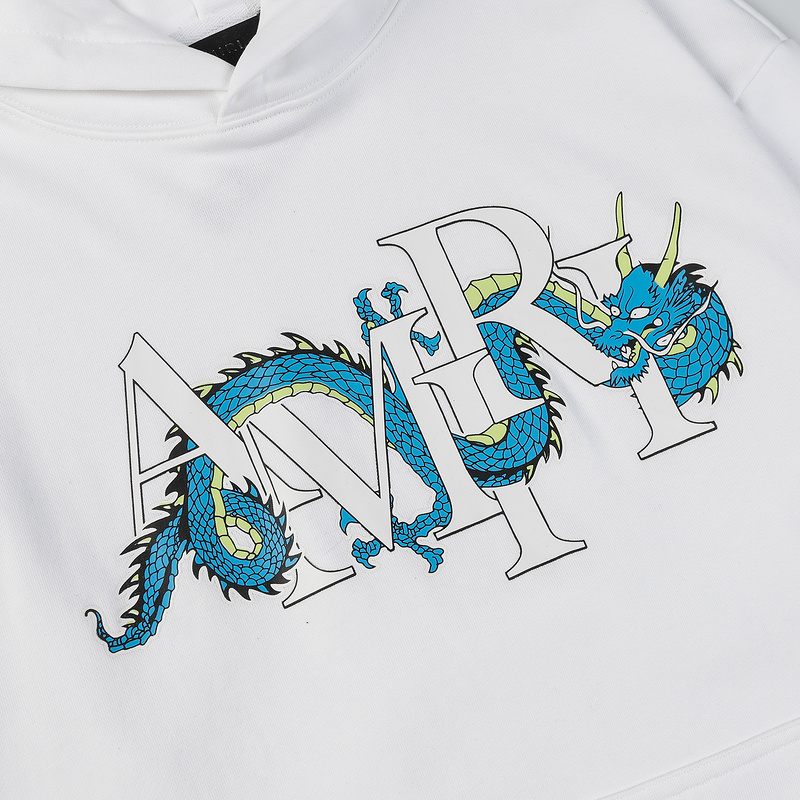 Худи с лого AMIRI и принтом дракон выполнено в белом-цвете с капюшоном