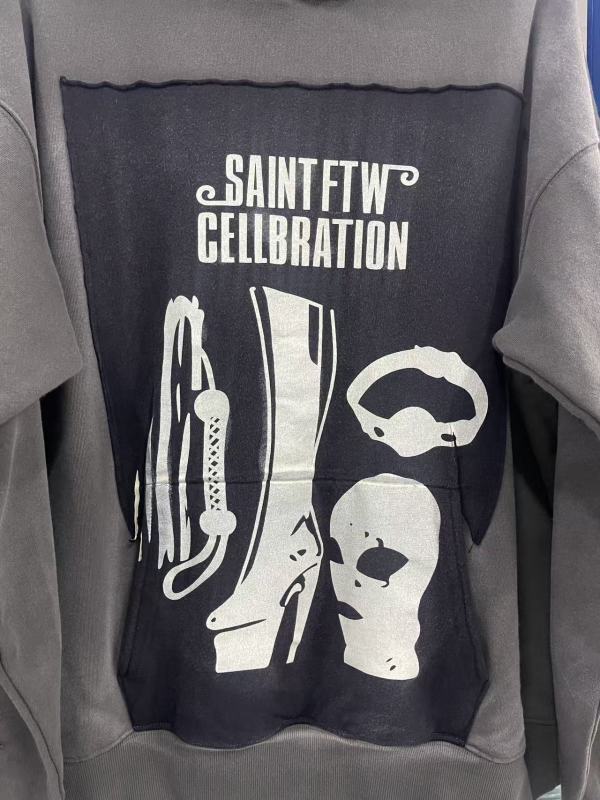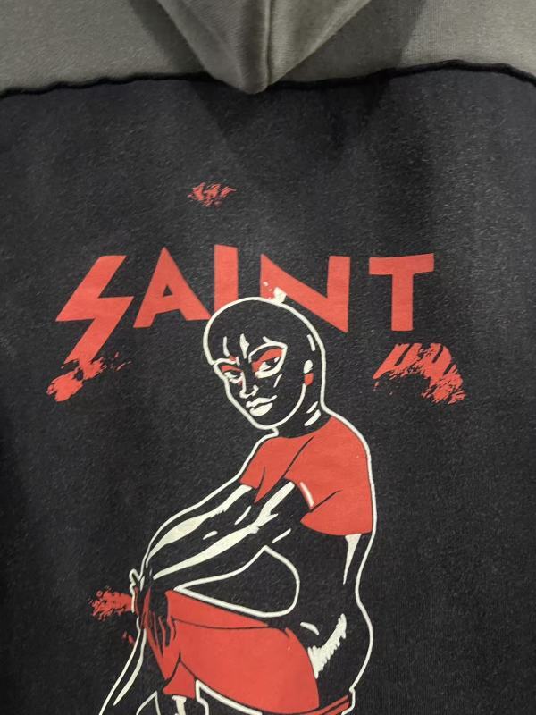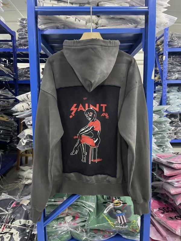 Худи Saint Michael в темно-сером цвете с потертостями и принтом