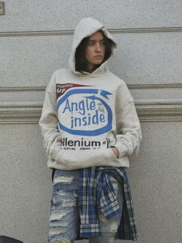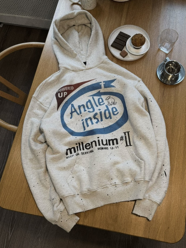 Худи светло-серое Saint Michael с принтом и карманом кенгуру