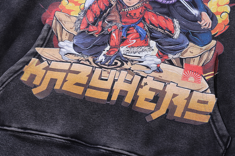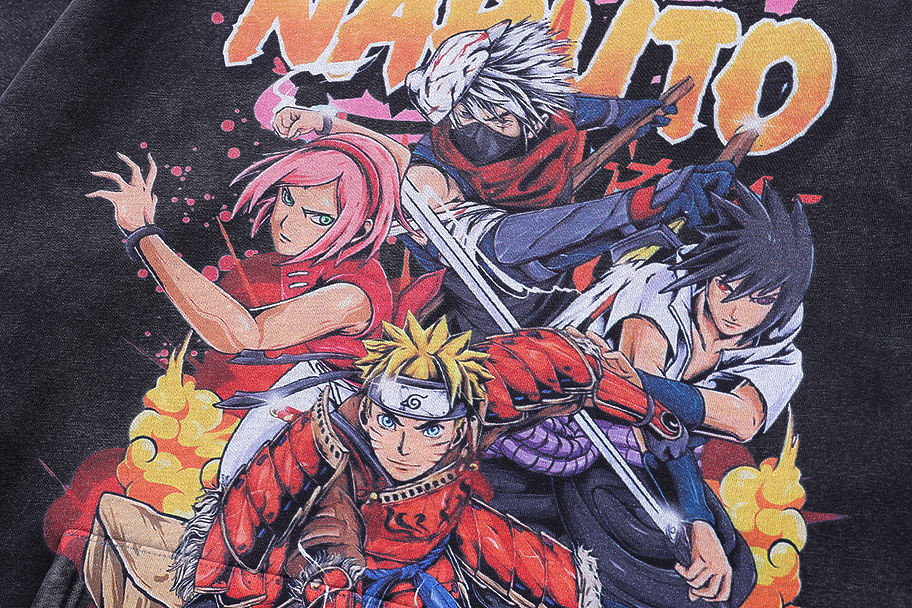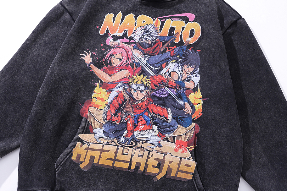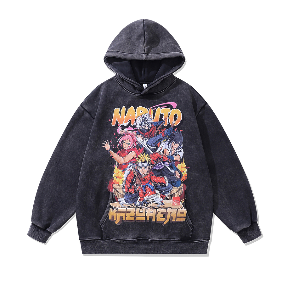 Повседневное с ярким принтом аниме Naruto черное выстиранное худи TKPA