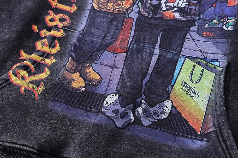 Объемное черное худи бренда TKPA с аниме принтом и карманами кенгуру