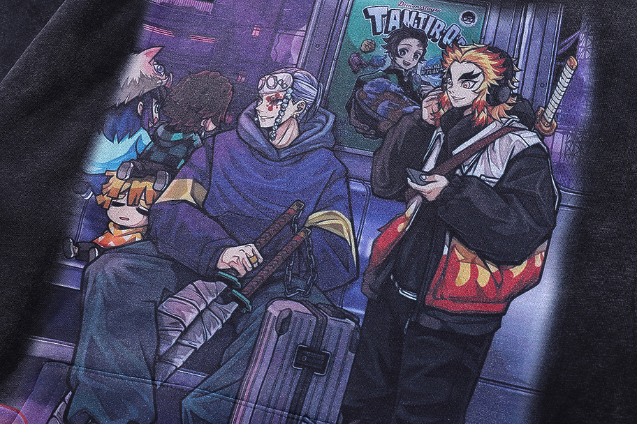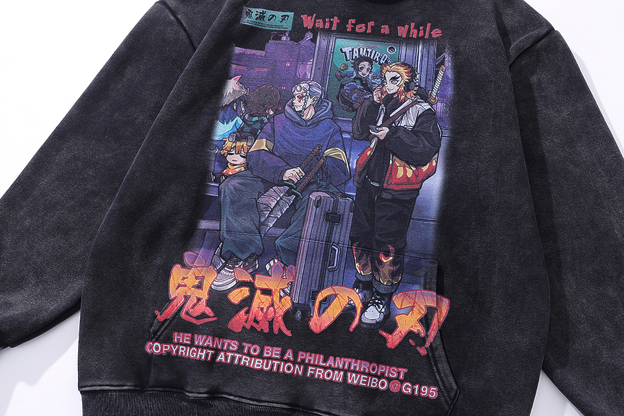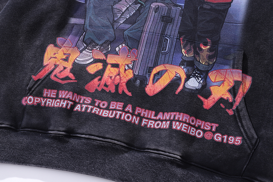 Оверсайз черное худи TKPA с принтом аниме персонажей и иероглифами